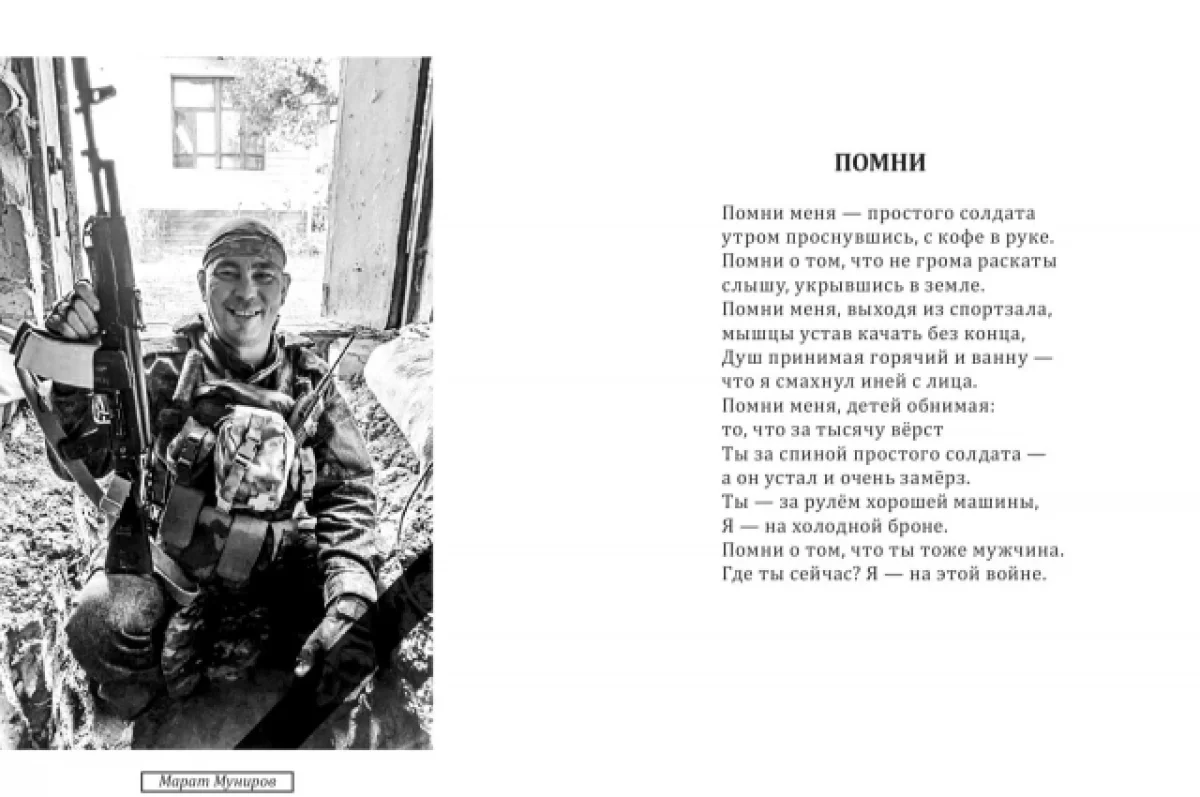 Кстати, одно из уцелевших стихотворений Марата начиналось строкой: «Помни меня, простого солдата». Оно — обращение к мужчинам, которые живут обычной жизнью. Далеко от обстрелов, вражеских дронов, скорби по погибшим товарищам и незнакомым «мирным».