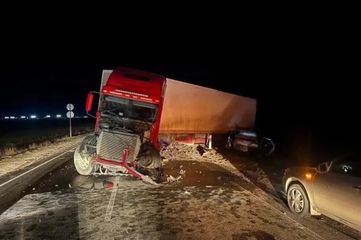 Авария произошла вечером 9 марта на автодороге «Керчь – Чистополье – Новоотрадное». Водитель грузовика «Фрейнлайнер» с полуприцепом выехал на встречную полосу и врезался в ВАЗ 2112.