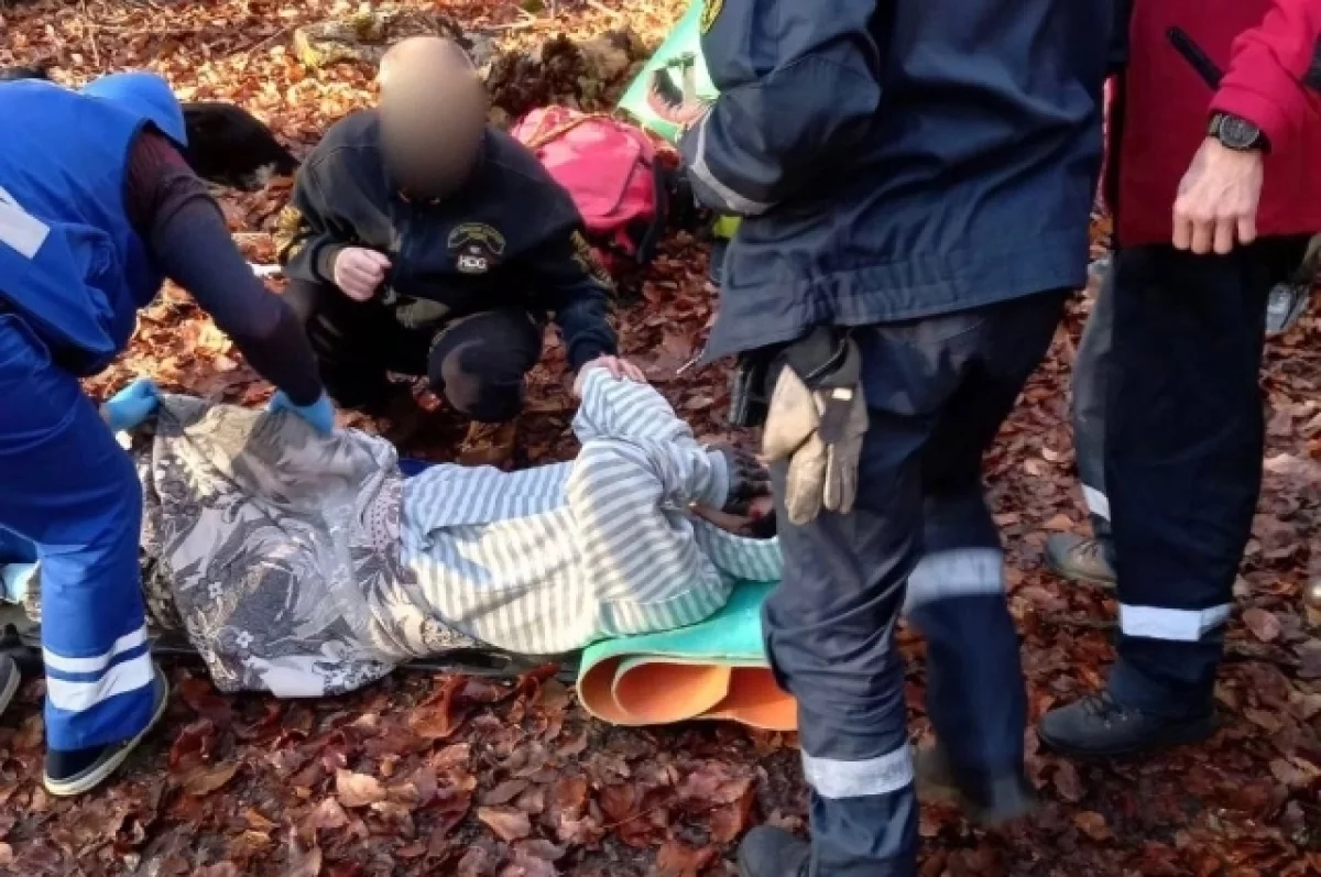 Вместе с медработниками они разыскали пострадавшую и оказали ей первую помощь. На носилках туристку доставили к карете СМП.