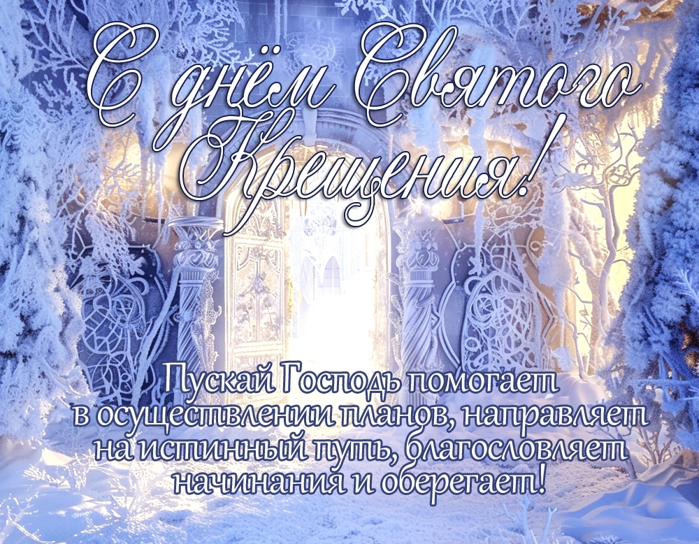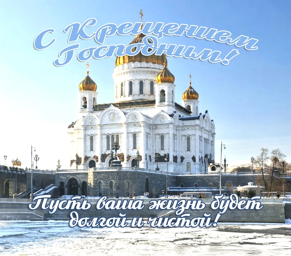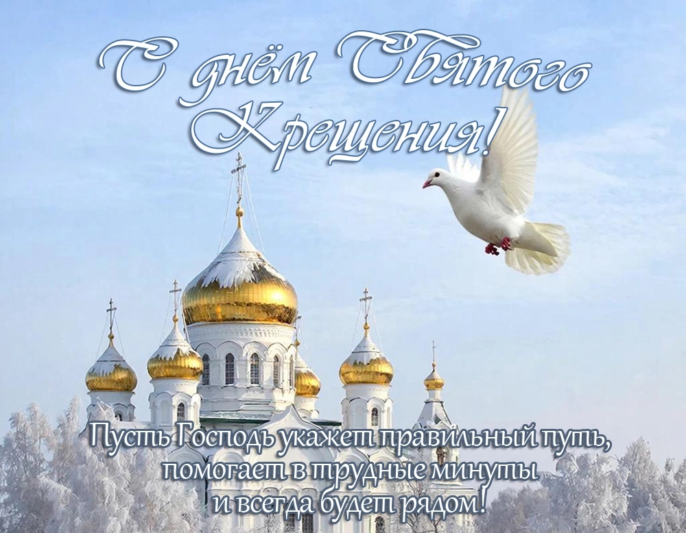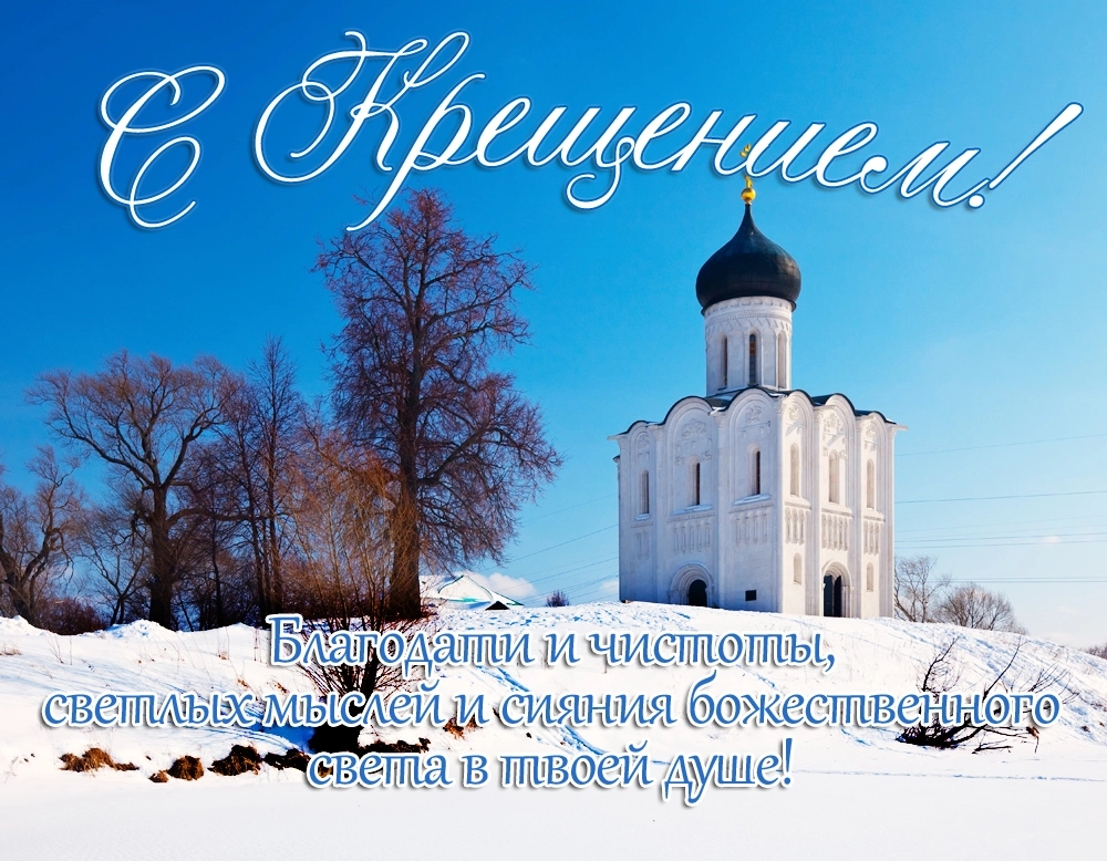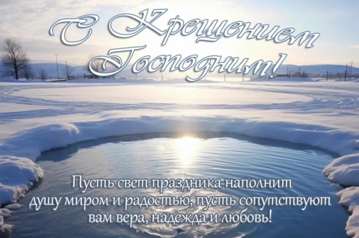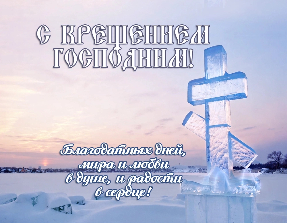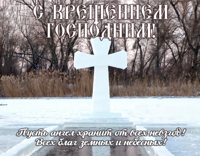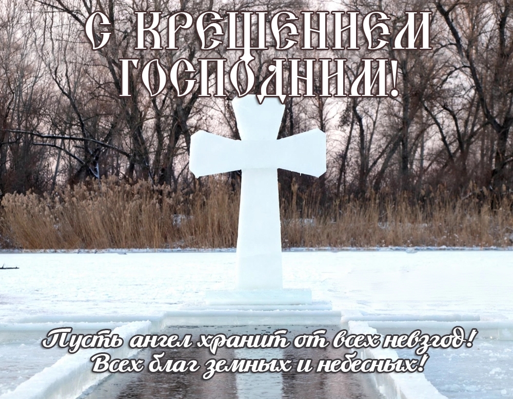 В этот день на Руси принято было окунаться в проруби — на такое не каждый осмелится, да и проруби не везде есть. Зато поздравить знакомых с праздником открыткой могут все — скачивайте, шлите родным и близким. С Крещением!