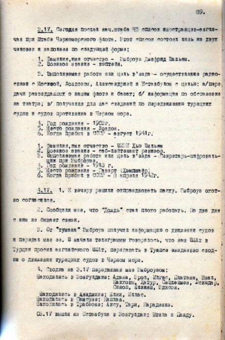 Рассекречен необычный многостраничный документ из архива УФСБ России по Республике Крым и городу Севастополю. Это — дневник сотрудника спецслужбы капитан-лейтенанта Петра Жмайло. В 1941-1942 годах он состоял при английской военно-морской миссии на Черноморском флоте. И вел записи о своих «подопечных».