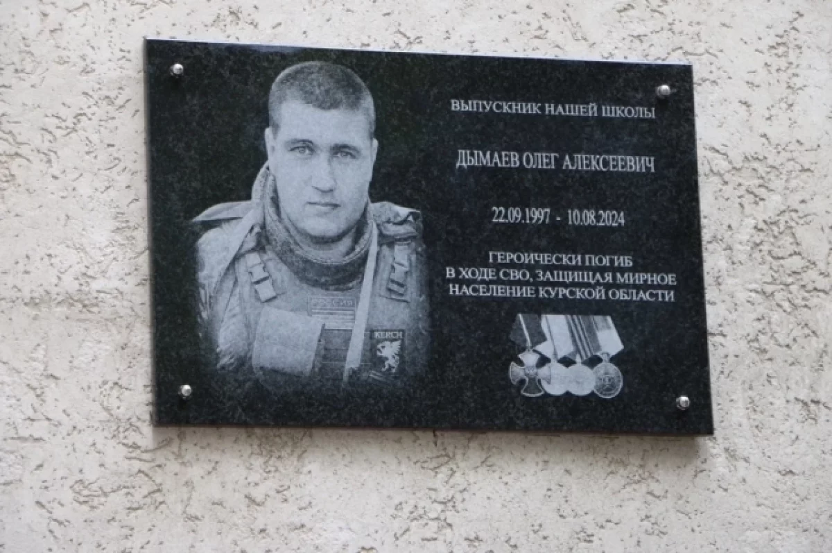 В Керчи на фасаде школы № 15 им. Героя СССР Евгении Рудневой открыли мемориальную доску в память об Олеге Алексеевиче Дымаеве, погибшем в ходе спецоперации. Об этом в своем Telegram-канале рассказал глава городской администрации Олег Каторгин.