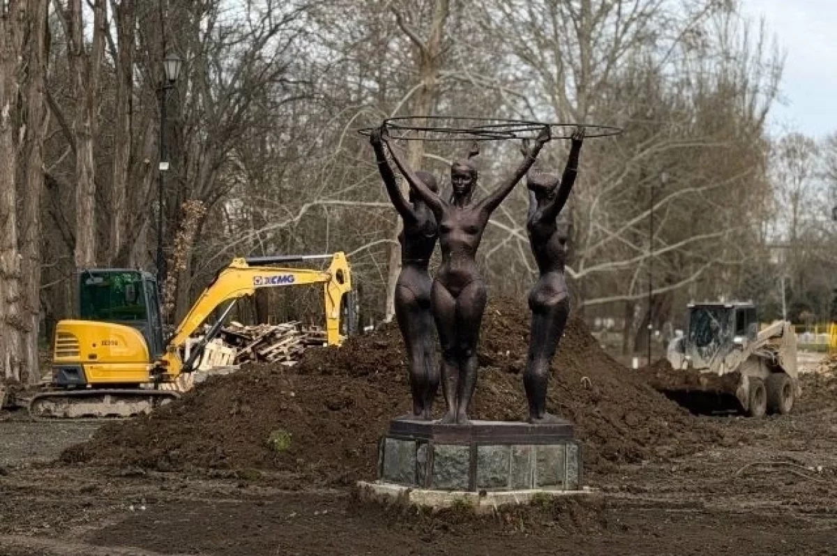 Сейчас идет демонтаж старого плиточного покрытия и бордюрного камня, чтобы освободить место для укладки новых материалов.